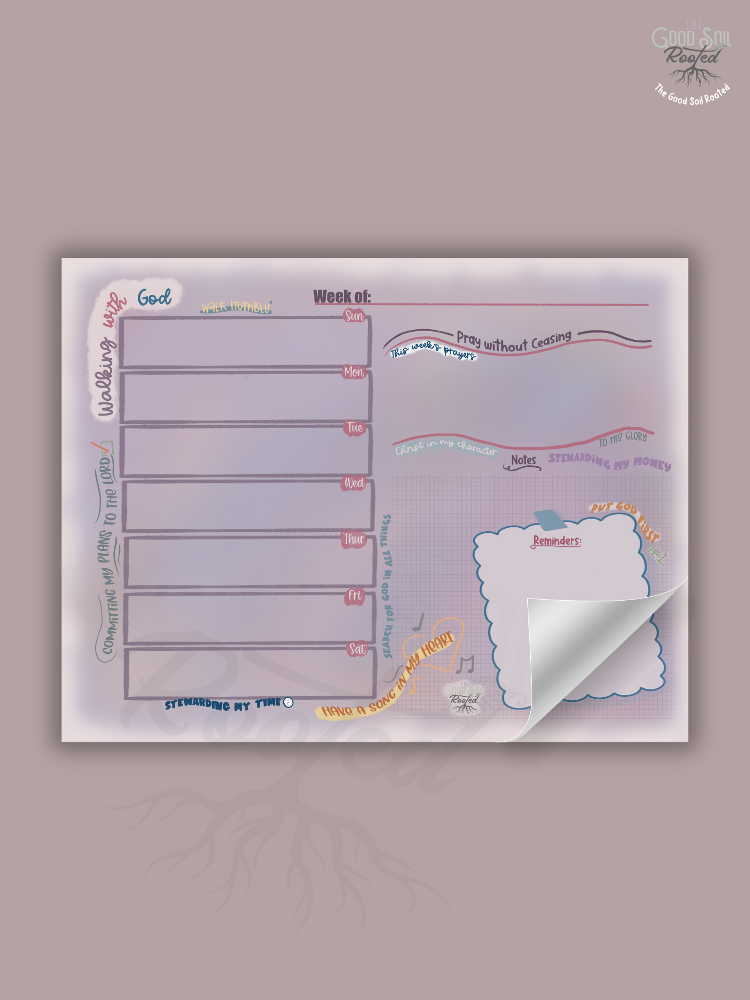 - Keeps you Rooted: We’ve tucked encouraging reminders throughout the pages to help you keep your eyes on Jesus while you check off your tasks.