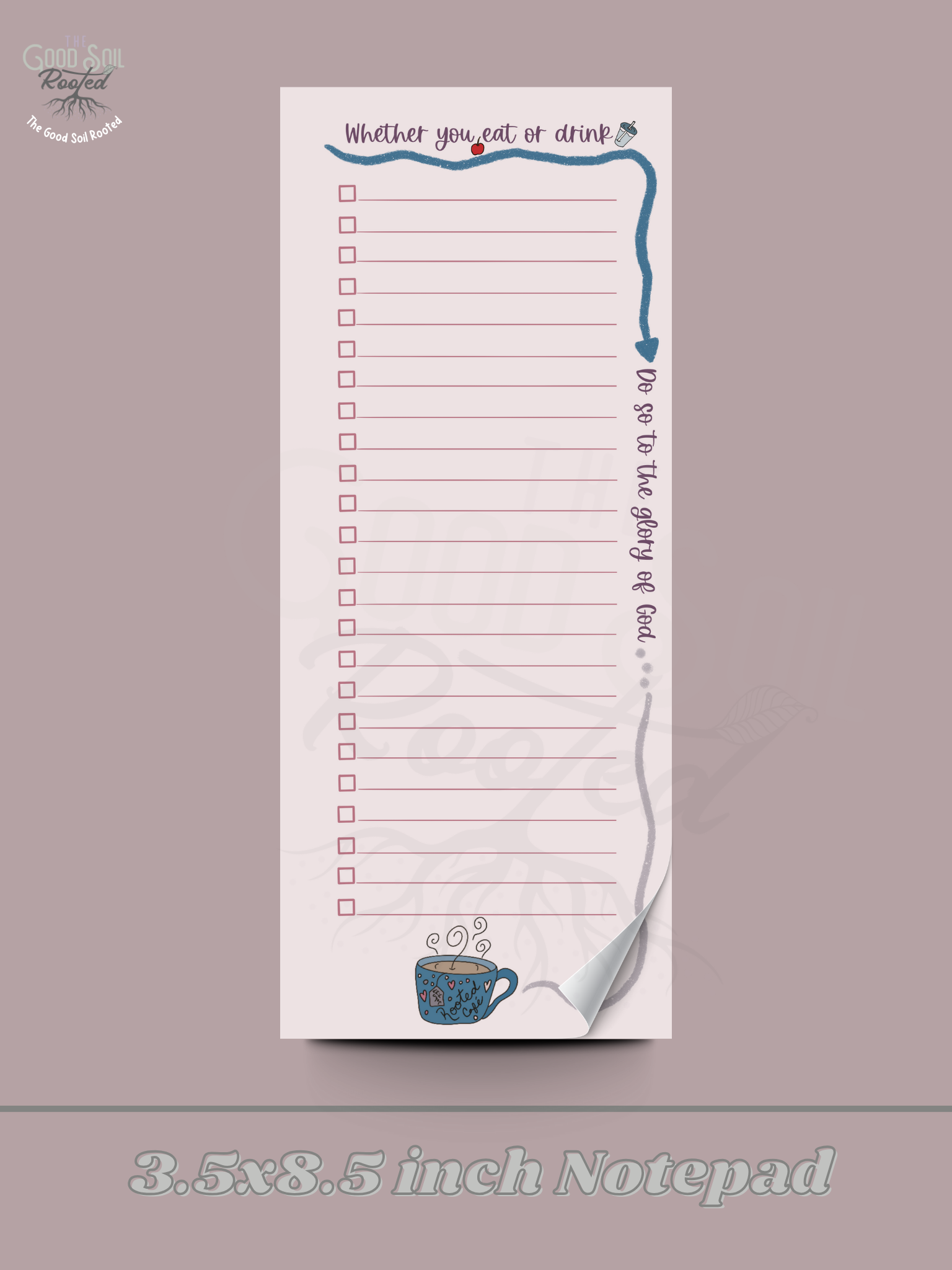 Add a touch of joy to your shopping with this delightful notepad designed for your grocery and shopping lists. Every page carries a heartwarming reminder that your everyday tasks—from selecting favorite ingredients to planning family meals—can be beautiful expressions of faith.
